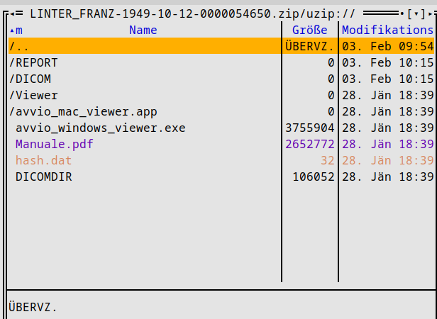 Weil mehr Daten vorhanden sein mussten, inspizierte ich die Datei im Terminal: