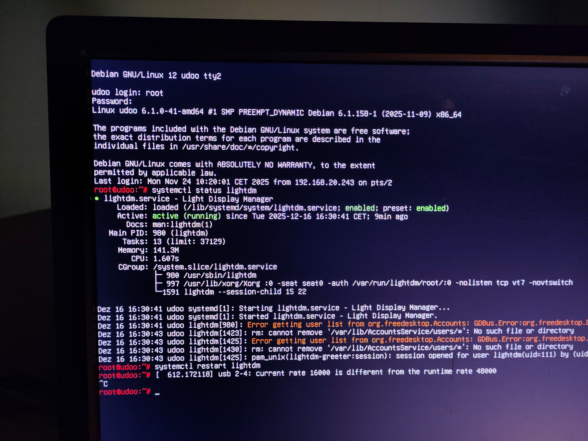 Dez 16 16:30:41 udoo systemd[1]: Starting lightdm.service - Light Display Manager...